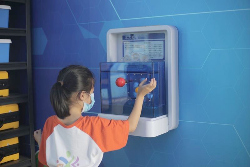 最后,小营员们分批进入科技教室以及消防安全教室。场馆老师带领孩子们动手实验操作,用双手感受科技的力量,激发探寻科学知识的好奇心。同时在另一边,志愿者正在为小营员们讲解环保知识及消防知识,都让他们对此前在课上所学知识有了更深的理解。