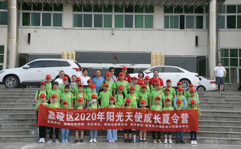 为让四川省南充市嘉陵区“事实孤儿”群体感受到来自政府、社会的关爱,8月2日,在嘉陵区民政局的指导下,由嘉陵区慈善总会主办、南充市卓锦社会工作服务中心承办的“嘉陵区2020年阳光天使成长夏令营”在金城山森林公园举行。来自嘉陵区的40名“事实孤儿”参加了为期5天4夜的自然成长之旅。