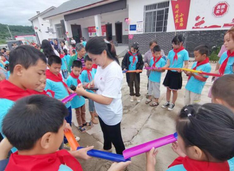 在情景剧活动后,安居区妇女联合会、安居区常理镇鲤鱼沟村负责人为孩子们送上了健康学习包,鼓励孩子们好好学习,健康成长!让孩子们感受到来自各方的关爱。