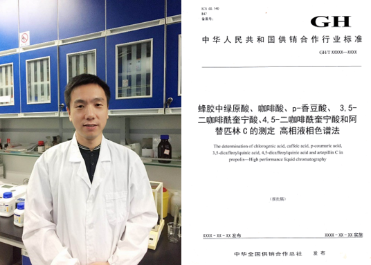 “我们经过几年的努力筛选出了蜂胶中六种标志性成分,制定了蜂胶国家行业标准,为蜂胶质量评价树立了新的方向,填补了国内蜂胶相关领域的空白。”标准起草人之一张翠平教授说。张教授曾获得中华农业科技奖一等奖1项,发表学术论文40余篇,获国家授权发明专利10项,起草国家标准3项,行业标准3项。目前担任中国养蜂学会蜂产品专委会副主任委员,中国养蜂学会蜂业标准化研究工作委员会委员,是国内蜂产品研究领域的权威专家。