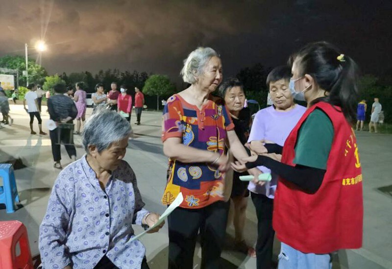傍晚,太阳最后一丝余晖洒落大地,参与百千万志愿者传播行动的志愿者们队伍整装出发,与晚霞相伴,将志愿红点亮在乡镇。天色渐暗,志愿者一行已摆好凳子,调好设备,乡镇居民们也如同来上课的小朋友,一个个排排坐好,散步的居民也驻足观望起来。