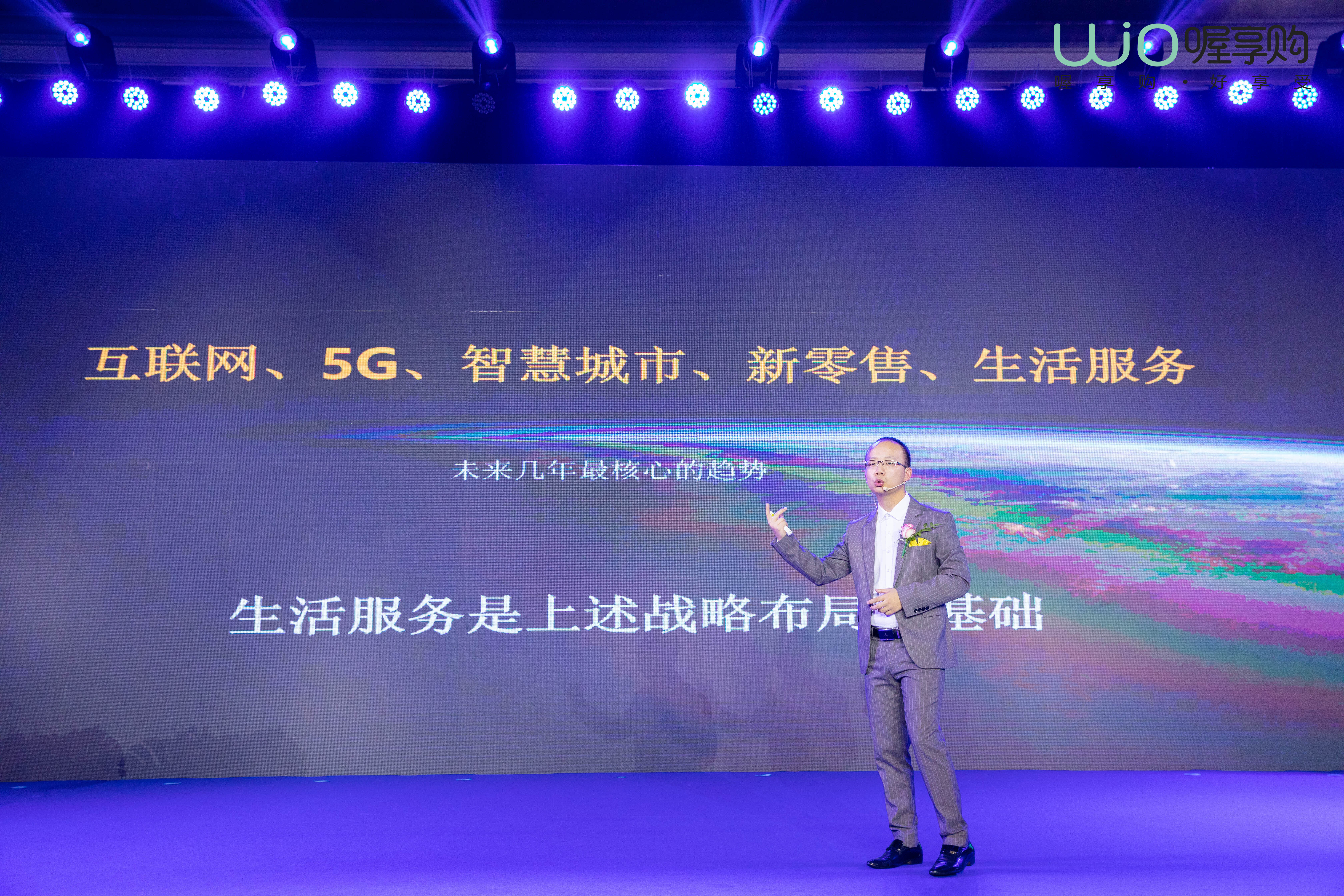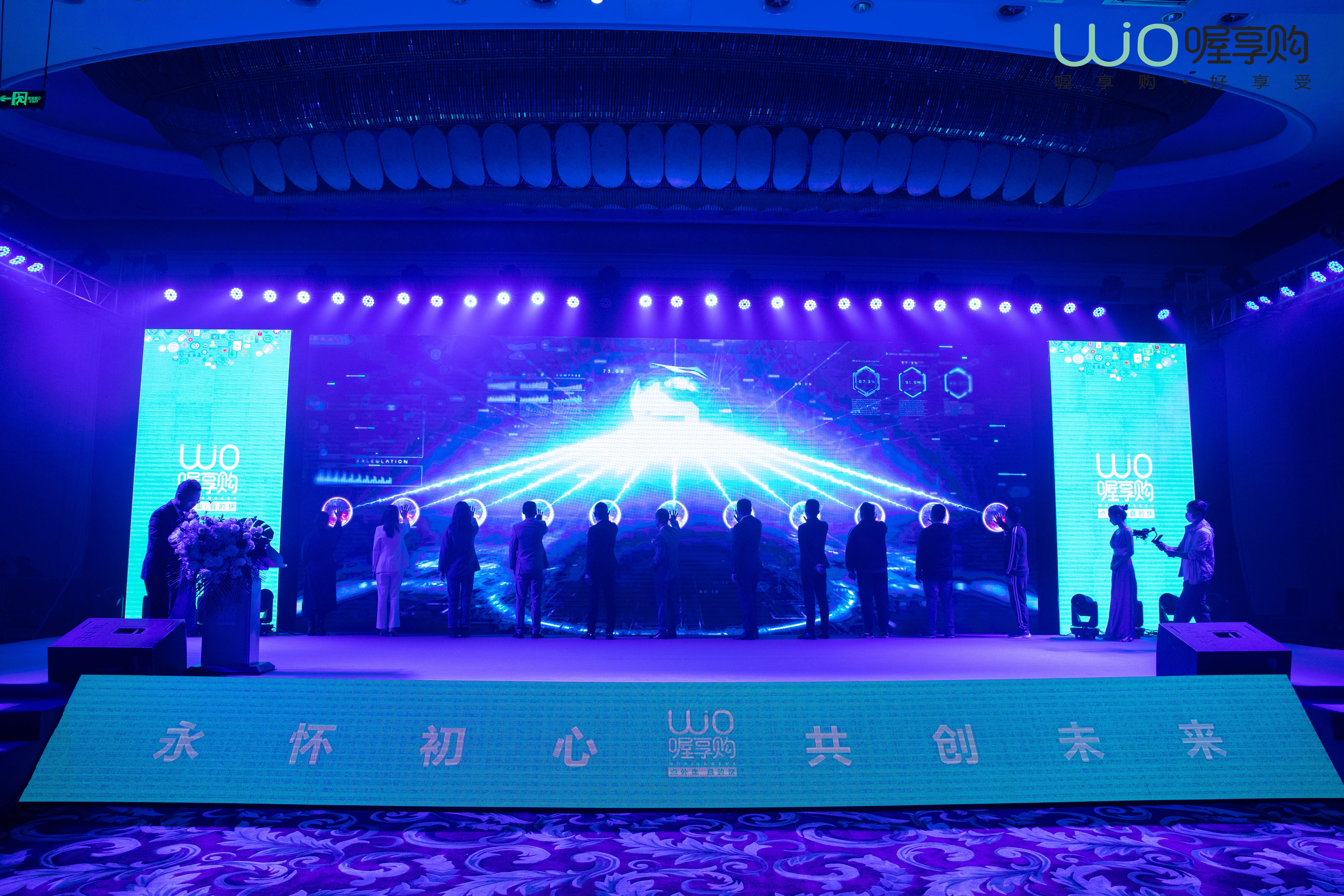 发布会上,四川喔享购科技有限公司各部门主要负责人共同上台启动“喔享购”APP产品发布。